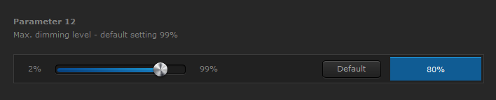 Change the value of parameter 12 (Max. dimming level) to 80%: