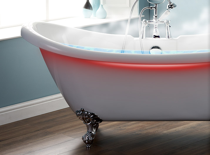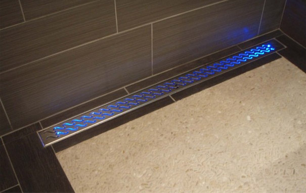 Illuminate heated floors, wash bowls, showers with LED strips that change colours depending on temperature. Staggering effect!