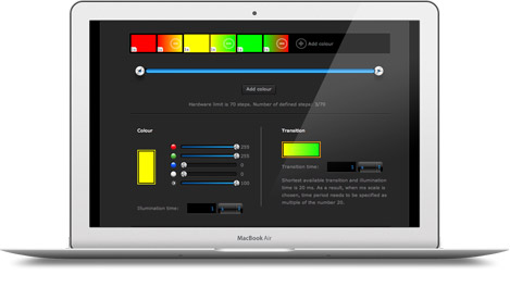 Set desired light colour manually, mixing colours using wall switches. Start other devices automatically, depending on lighting colour set.