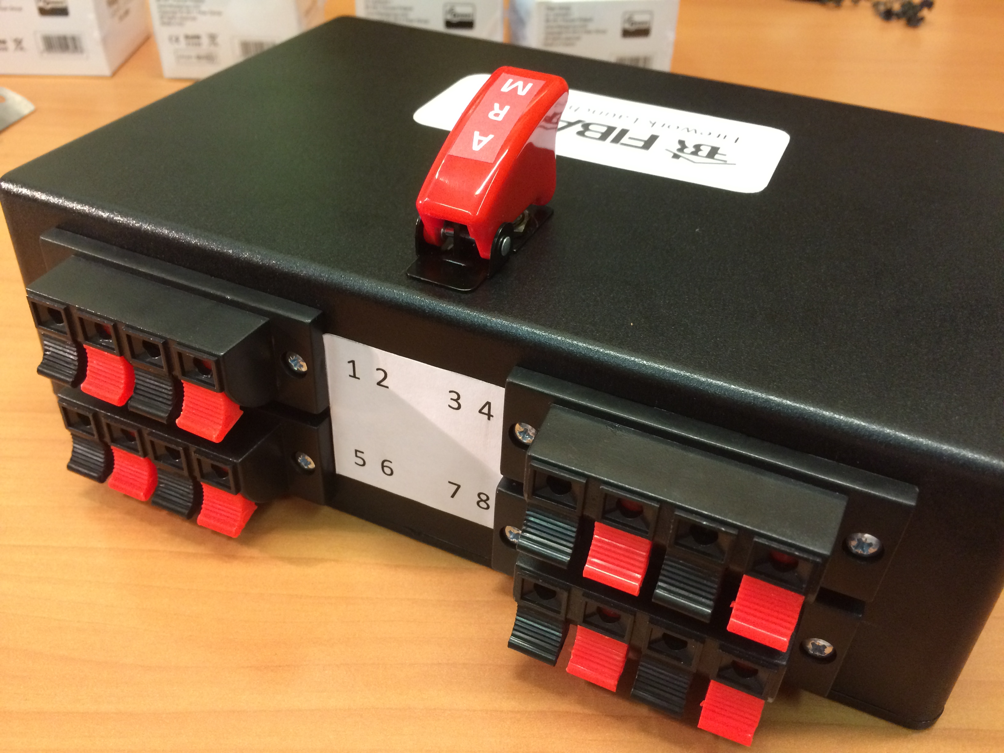 This little beauty has the ability to remotely launch up to 8 fireworks simultaneously, and features a hard-wired ‘Arm’ switch (in classic missile style) to ensure you can’t accidentally set something off while wiring it all up.