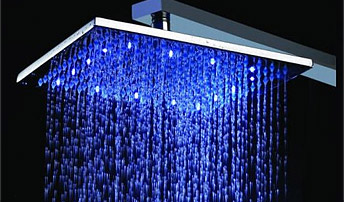 Illuminate heated floors, wash bowls, showers with LED strips that change colours depending on temperature. Staggering effect!